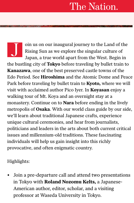I kept a stack of well-thumbed issues of The Nation Magazine in my New York apartment so it was an honor to host their first-ever Japan Tour these pasts two weeks along with Pico Iyer and other accomplished Japan-based authors, journalists and scholars.